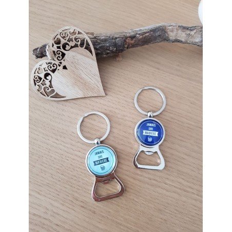 Porte clés décapsuleur Jamais sans ma bière personnalisé dans notre atelier de La Ciotat.