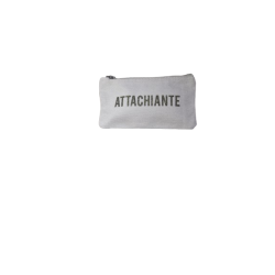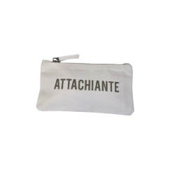 Parce qu'on peut être attachante et un peu chiante, mais toujours brillante, découvre notre trousse "Attachiante" beige à paillettes vert kaki.