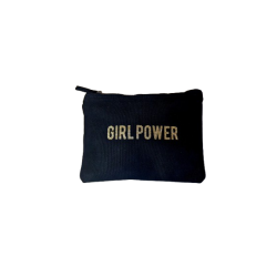 Brille par ta force et ton style avec notre pochette noire "Girl Power" à paillettes dorées